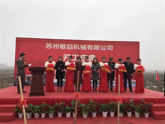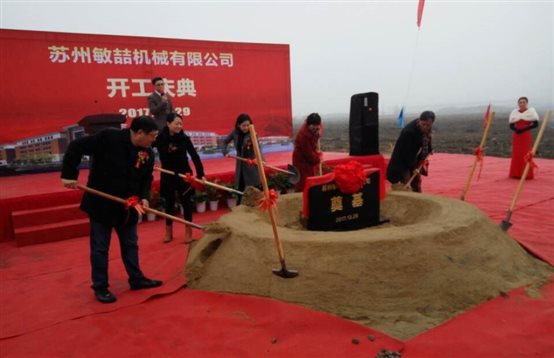 2017年12月29日,我司全資子公司蘇州敏喆機(jī)械有限公司新工廠奠基及開(kāi)工儀式隆重舉行。我司董事長(zhǎng)劉迪女士及蘇州吳中開(kāi)發(fā)區(qū)領(lǐng)導(dǎo)參加了奠基及開(kāi)工剪彩儀式。